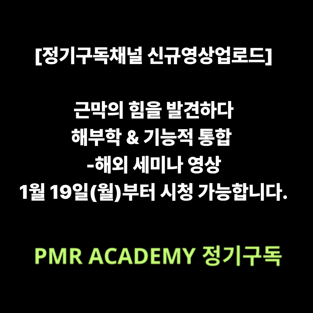 PMR ACADEMY 는 연구, 평가, 중재에 있어서 하나의 정답을 찾는 것이 아니라 국내외 전문가들과 서로 교류하며, 조금 더 효율적인 방법을 찾습니다. 저는 PMR ACADEMY 커뮤니티를 운영하고 있는 채은수 물리치료사입니다.
