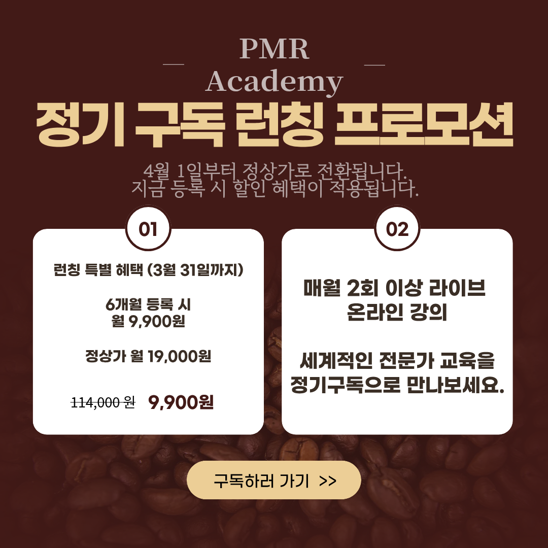 PMR ACADEMY 는 연구, 평가, 중재에 있어서 하나의 정답을 찾는 것이 아니라 국내외 전문가들과 서로 교류하며, 조금 더 효율적인 방법을 찾습니다. 저는 PMR ACADEMY 커뮤니티를 운영하고 있는 채은수 물리치료사입니다.